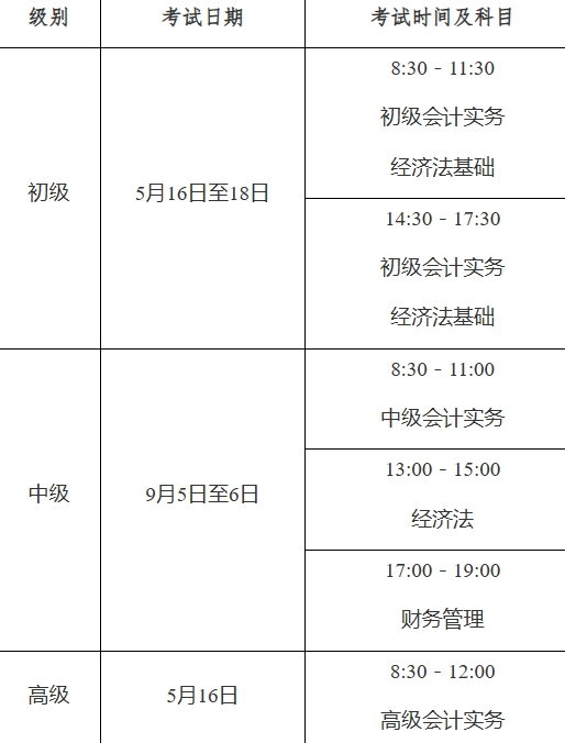 (二)中級會計資格考試于2026年9月5日至6日舉行,共2個批次。《中級會計實務》科目考試時長為150分鐘,《經(jīng)濟法》科目考試時長為120分鐘,《財務管理》科目考試時長為120分鐘。