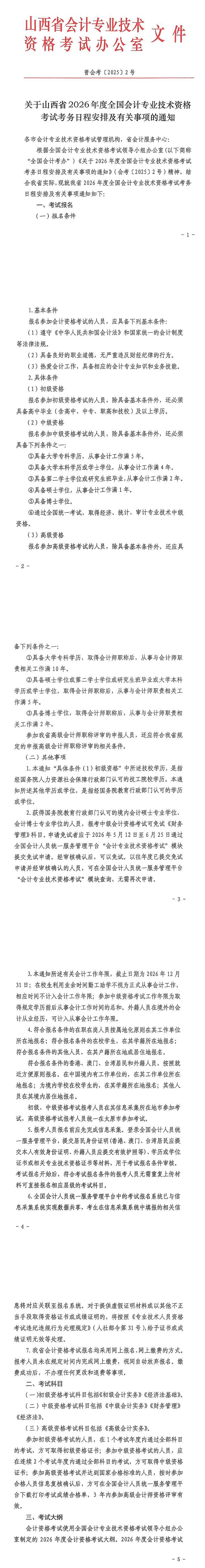 關(guān)于山西省2026年度全國會計專業(yè)技術(shù)資格考試考務(wù)日程安排及有關(guān)事項的通知