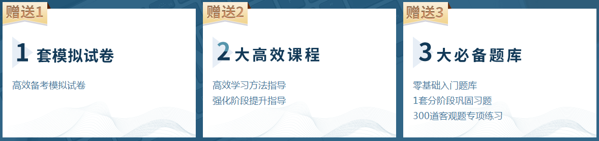 豪禮三:3大題庫包含:零基礎(chǔ)入門題庫;1套分階段鞏固習(xí)題;300道客觀專項練習(xí)。