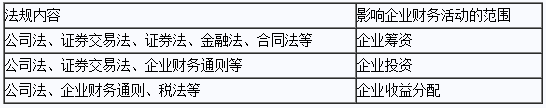 國(guó)家相關(guān)法律法規(guī)按照對(duì)財(cái)務(wù)管理內(nèi)容的影響情況可以分如下幾類: