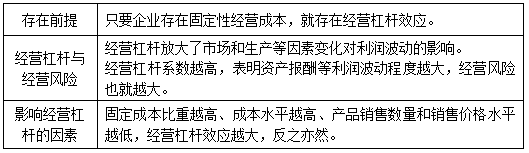 (1)含義:是指由于固定性經(jīng)營(yíng)成本的存在,而使得企業(yè)的資產(chǎn)報(bào)酬(息稅前利潤(rùn))變動(dòng)率大于業(yè)務(wù)量變動(dòng)率的現(xiàn)象。