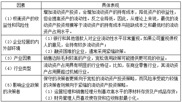 2.選擇何種流動(dòng)資產(chǎn)投資戰(zhàn)略的應(yīng)考慮的因素