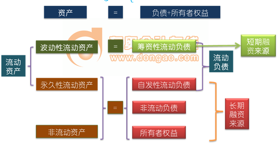 1.自發(fā)性流動(dòng)負(fù)債、長期負(fù)債以及權(quán)益資本為融資的長期來源;臨時(shí)性流動(dòng)負(fù)債為短期來源。