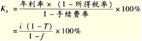 式中:Kb:銀行借款資本成本率;i:銀行借款年利率;f:籌資費用率;T:所得稅率。