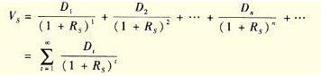 如果股東不中途轉讓股票,投資于股票所得到的未來現(xiàn)金流量是各期的股利。假定某股票未來各期股利為D.(t為期數(shù)),尺s為估價所采用的貼現(xiàn)率即所期望的最低收益率,股票價值的估價模型為: