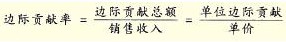 單位邊際貢獻(xiàn)=單價(jià)一單位變動(dòng)成本=單價(jià)×邊際貢獻(xiàn)率