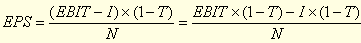 在EPS的計(jì)算公式中,息稅前利潤增加10%,利息并不發(fā)生變動(dòng),這樣,EPS的變動(dòng)率就會(huì)大于10%。之所以會(huì)存在EPS變動(dòng)率大于EBIT變動(dòng)率這種現(xiàn)象,原因在于存在固定的利息費(fèi)用。
