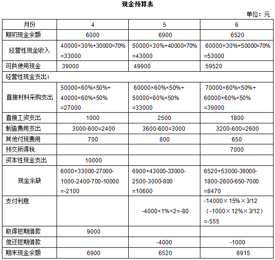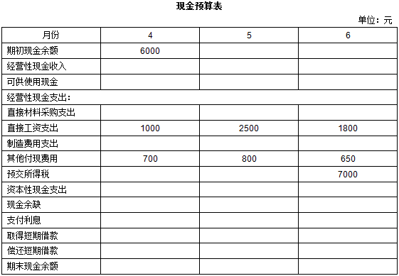 (7)預(yù)計該企業(yè)期末現(xiàn)金余額的規(guī)定范圍是6000~7000元,長期借款利息每季度末支付一次,短期借款利息還本時支付,其他資料見現(xiàn)金預(yù)算表。
