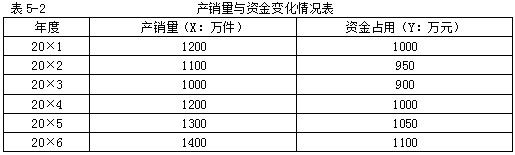 【教材例5-4】某企業(yè)歷年產(chǎn)銷量和資金變化情況如表5-2所示,根據(jù)表5-2整理出表5-3。20×7年預(yù)計銷售量為1500萬件,需要預(yù)計20×7年的資金需要量。