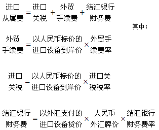 進(jìn)口設(shè)備購(gòu)置費(fèi)的估算:設(shè)備購(gòu)置費(fèi)用=以人民幣標(biāo)價(jià)的進(jìn)口設(shè)備到岸價(jià)+進(jìn)口從屬費(fèi)+國(guó)內(nèi)運(yùn)雜費(fèi)