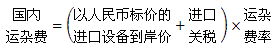 國(guó)際運(yùn)費(fèi)(外幣)=離岸價(jià)(外幣)×國(guó)際運(yùn)費(fèi)率=單位運(yùn)價(jià)(外幣)×運(yùn)輸量