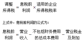 調(diào)整所得稅是項(xiàng)目可行性評(píng)價(jià)中的一個(gè)專有術(shù)語(yǔ),它是為了簡(jiǎn)化計(jì)算而設(shè)計(jì)的虛擬企業(yè)所得稅,其計(jì)算公式為: