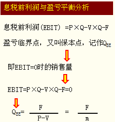 息稅前利潤(rùn)(EBIT) =凈利潤(rùn)+所得稅+利息=P×Q-V×Q-F=M-F=m×Q-F