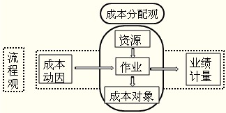 圖中垂直部分反映了成本分配觀,它說(shuō)明成本對(duì)象引起作業(yè)需求,而作業(yè)需求又引起資源的需求。因此,成本分配是從資源到作業(yè),再?gòu)淖鳂I(yè)到成本對(duì)象,而這一流程正是作業(yè)成本計(jì)算的核心。
