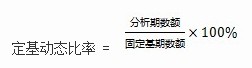 (1) 定基動態(tài)比率,是以某一時期的數(shù)額為固定的基期數(shù)額而計算出來的動態(tài)比率。其計算公式為: