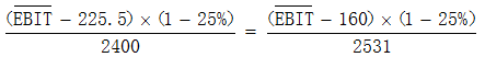 。3)①預(yù)計(jì)息稅前利潤=2000×(1+40%)=2800(萬元)