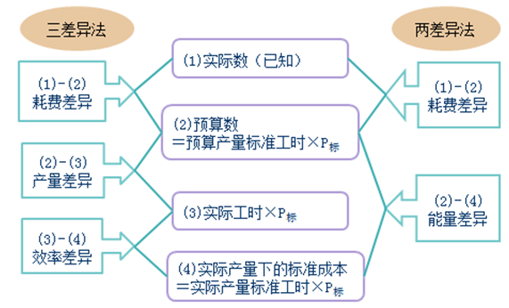 2.固定制造費(fèi)用兩差異分析和三差異分析: