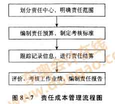 責任成本管理,是指將企業(yè)內部劃分成不同的責任中心,明確責任成本,并根據各責任中心的權、責、利關系,來考核其工作業(yè)績的一種成本管理模式。其中,責任中心也叫責任單位,是指企業(yè)內部具有一定權力并承擔相應工作責任的部門或管理層次。責任成本管理的流程如下圖所示。