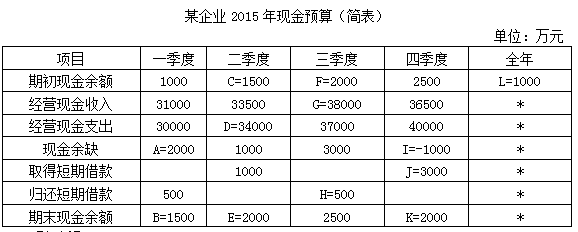 某企業(yè)2015年現(xiàn)金預算(簡表)如下表所示。假定企業(yè)發(fā)生現(xiàn)金余缺均由歸還或取得流動資金借款解決,且流動資金借款利息可以忽略不計。除表中所列項目外,企業(yè)沒有有價證券,也沒有發(fā)生其他現(xiàn)金收支業(yè)務。預計2015年年末流動負債為4000萬元,需要保證的年末現(xiàn)金占流動負債的比率為50%。