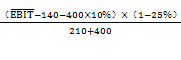 (4)EPS甲=(500-140-400×10%)×(1-25%)/(210+400)=0.39(元/股)