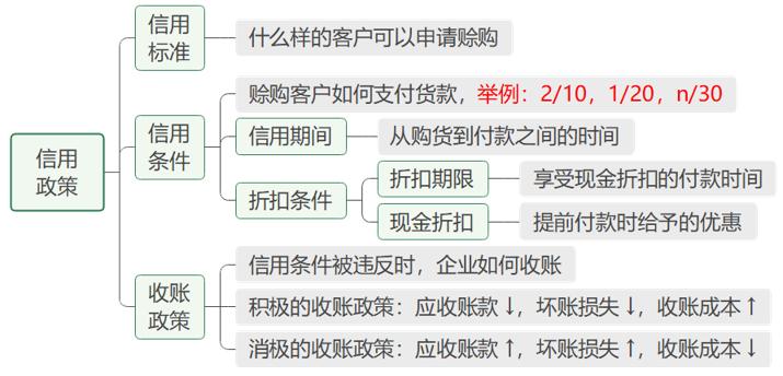 信用政策包括信用標(biāo)準(zhǔn)、信用條件和收賬政策三個(gè)方面。
