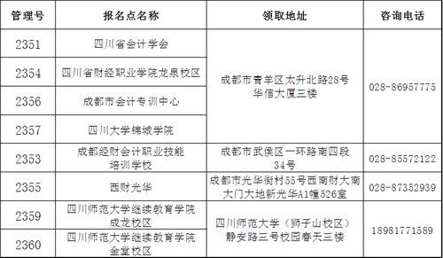 省直考區(qū)領證地點分別為四川省會計學會、成都經(jīng)財職業(yè)學院培訓學校、西財光華、四川師范大學(獅子山校區(qū)),請根據(jù)報名時所選擇的報名點到指定地點領證,領證流程如下: