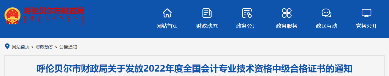 呼倫貝爾市財(cái)政局關(guān)于發(fā)放2022年度全國(guó)會(huì)計(jì)專業(yè)技術(shù)資格中級(jí)合格證書的通知
