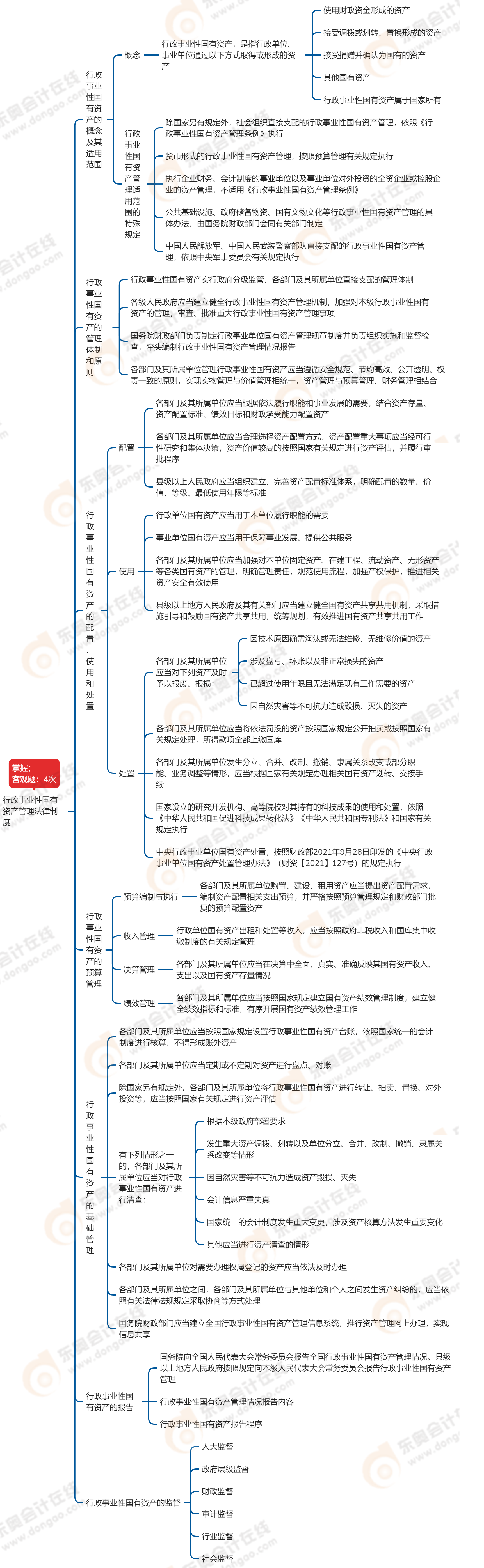 中級(jí)會(huì)計(jì)學(xué)習(xí)的過程中有付出才會(huì)有回報(bào),為了幫助大家更好的備考,東奧整理了《經(jīng)濟(jì)法》七章財(cái)政法律制度的【行政事業(yè)性國有資產(chǎn)管理法律制度思維導(dǎo)圖如下: