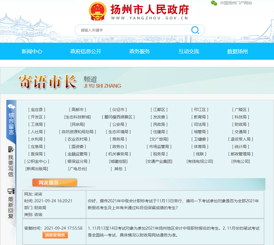 揚(yáng)州市人民政府“寄語(yǔ)市長(zhǎng)”這一欄目發(fā)布了相關(guān)的提問(wèn),因?yàn)橹肮俜揭呀?jīng)公布揚(yáng)州地區(qū)考試取消,所以很多考生都不確定其是否準(zhǔn)確。從官方回復(fù)來(lái)看,這個(gè)考試時(shí)間也并不是肯定的,具體的還需要財(cái)政局的通告。有消息小編也會(huì)及時(shí)發(fā)布。