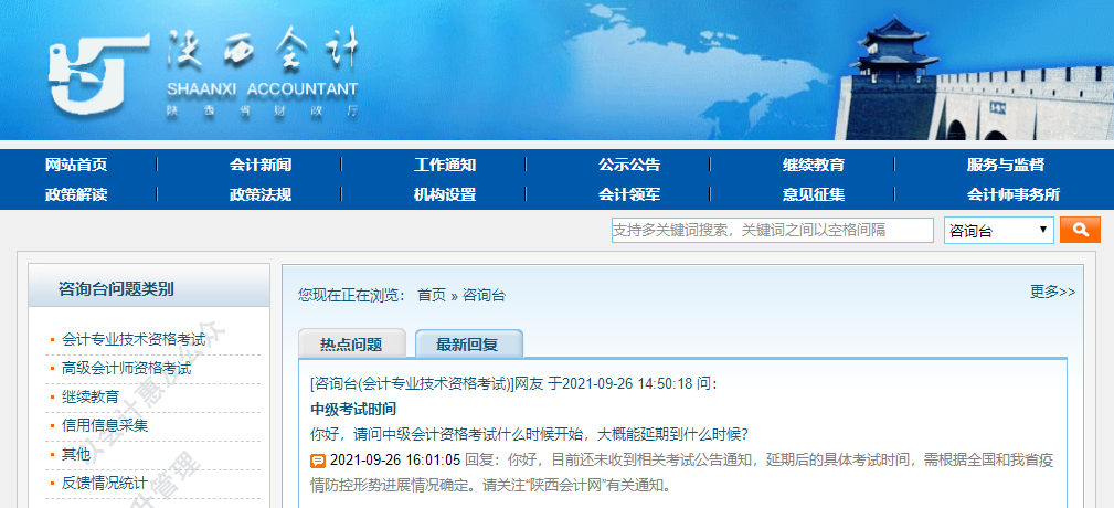 在陜西會(huì)計(jì)網(wǎng)的咨詢(xún)臺(tái)中,官方給出的回復(fù)是沒(méi)有收到相應(yīng)的公告。