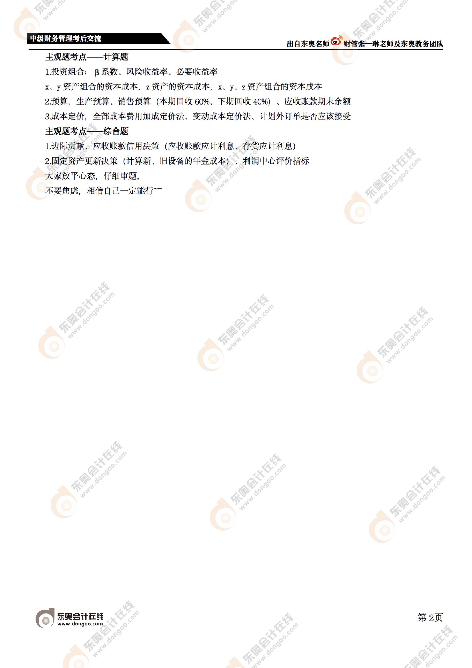 2022年中級會計(jì)財(cái)務(wù)管理第二批次的考試已經(jīng)結(jié)束,東奧會計(jì)在線推出了“2022年中級會計(jì)考試及時(shí)交流”互動直播!考生可以在直播間與老師互動交流考試相關(guān)內(nèi)容!為了方便考生梳理記憶,東奧會計(jì)在線整理了文字版本的內(nèi)容,請各位考生注意查收!點(diǎn)擊觀看完整直播>>>
