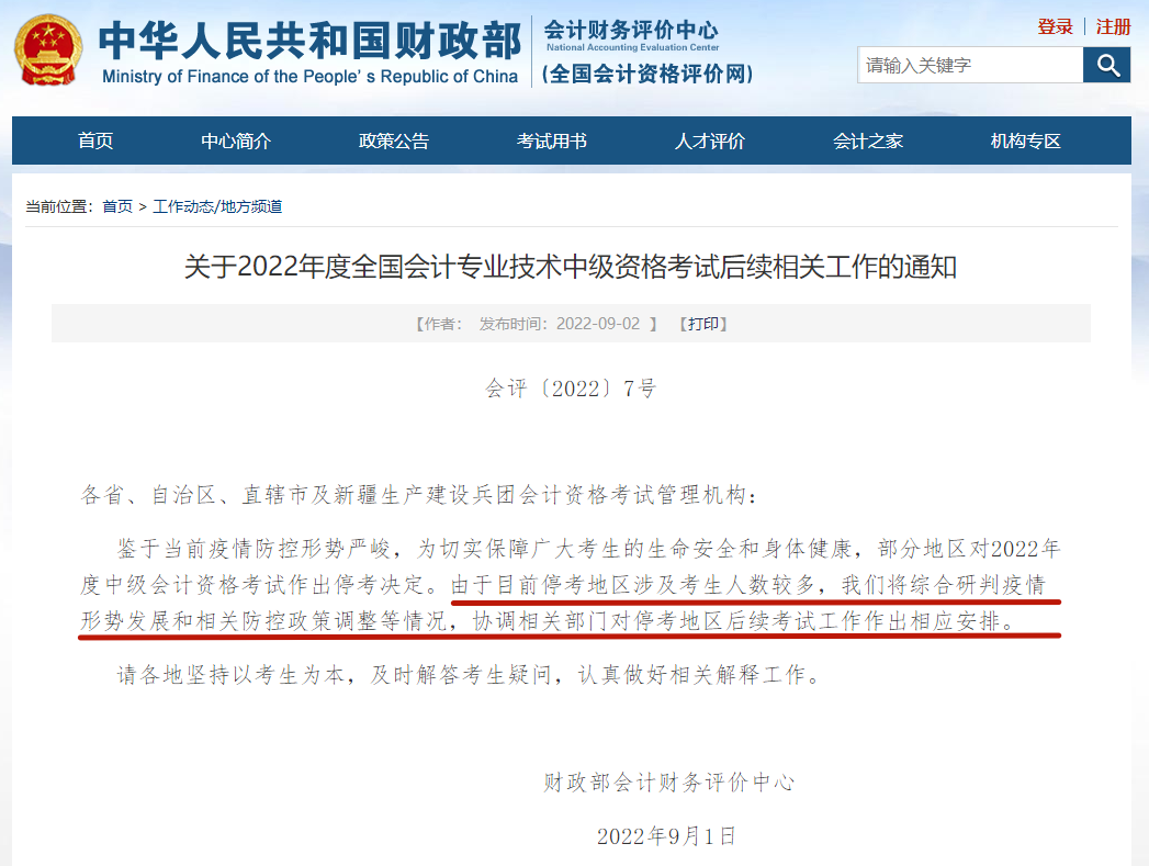 扎心!全國多地相繼叫停2022年中級會計職稱考試
