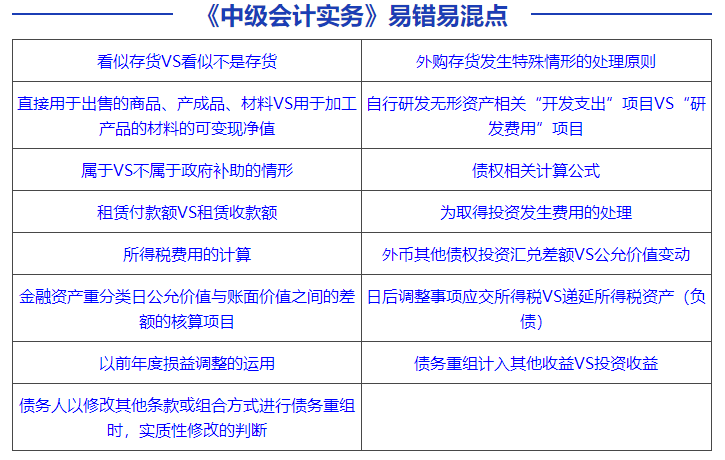 但是無論如何,就像東奧會計在線的官博說的那樣“有消息就比沒有消息好”。因此,希望所有考生們都要拒絕擺爛,重新調(diào)整心態(tài),在短暫地意志消沉過后,迅速調(diào)整到備考狀態(tài),以備重新開考的正式通告下發(fā)時,仍然可以憑借飽滿的斗志重新步入考場?,F(xiàn)在預(yù)留給大家的時間,完全可以重新再復(fù)盤一下以前學(xué)習(xí)過程中的易錯易混知識點,利用這段空擋期,繼續(xù)保持手感,不斷刷題。這里也給大家提供一些中級會計職稱考試各科中的易錯易混知識點。