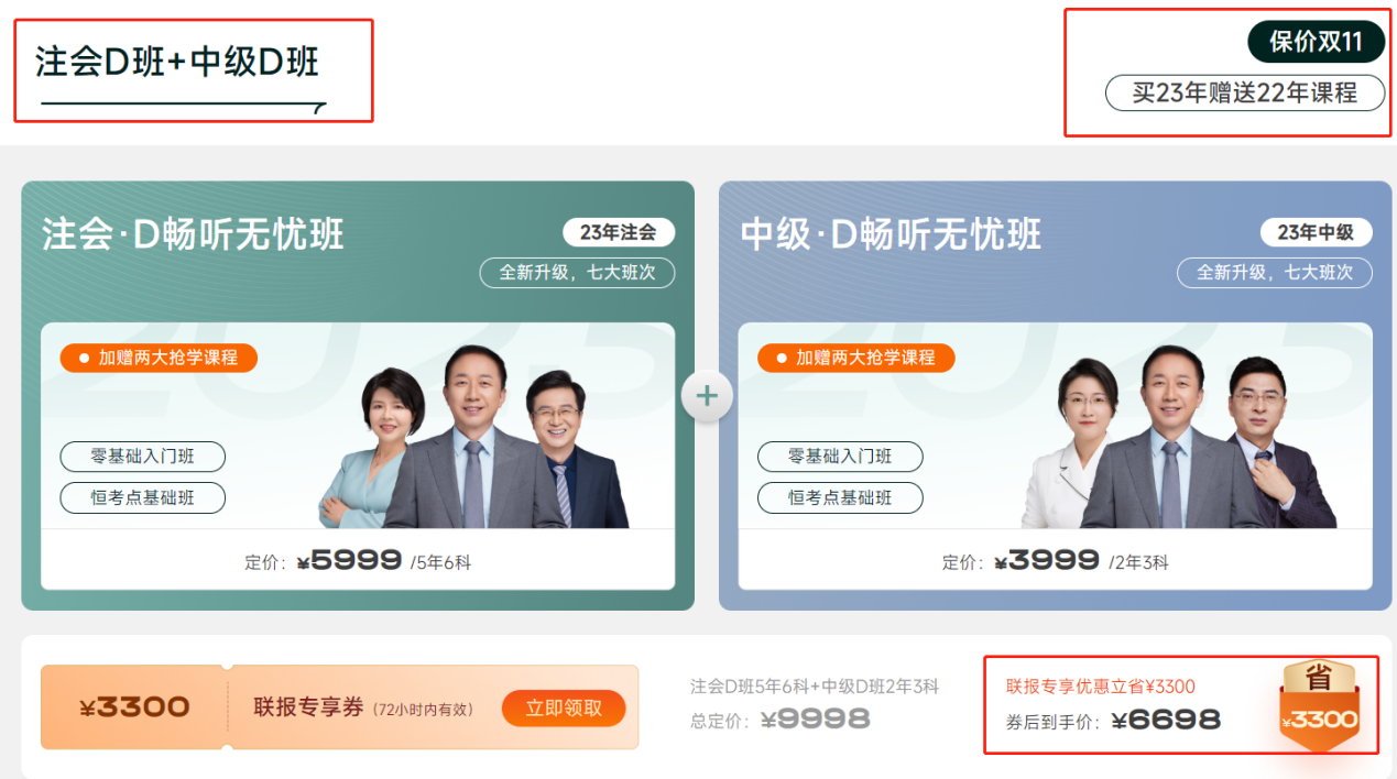 跨考聯(lián)報折上折活動可以說是非常能夠彌補(bǔ)2022年未能參加中級考試的考生們了,也相當(dāng)于為這部分考生量身定制一樣,雙科一起報名,現(xiàn)在立省3000+,而且所包含的課程都是東奧的主推D暢聽無憂班系列,師資力量和授課體系也都深受廣大學(xué)員的認(rèn)可。