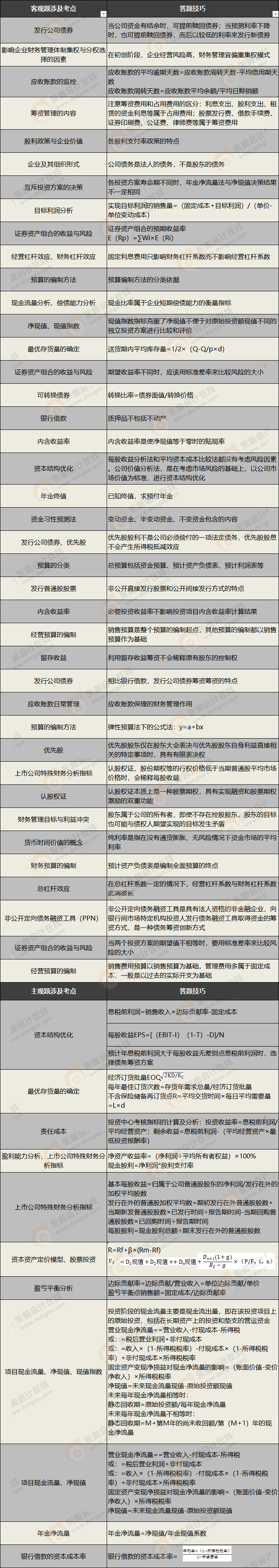 《財務(wù)管理》考試涉及考點答題技巧