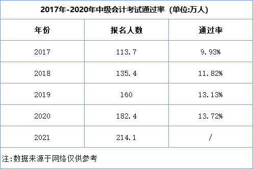 以下為近幾年中級會計(jì)考試的通過率,由下圖可知中級會計(jì)考試的通過率并不高。