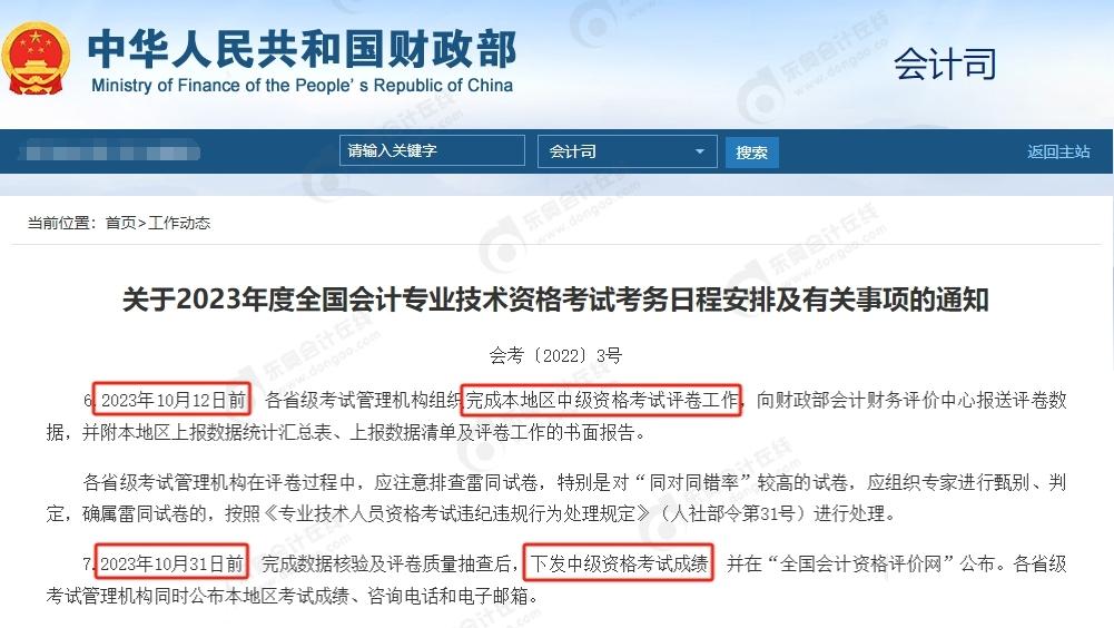 2023年10月31日前,完成數(shù)據(jù)核驗及評卷質(zhì)量抽查后,下發(fā)2023年度中級資格考試成績,并在“全國會計資格評價網(wǎng)”公布。