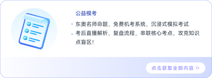 公益??脊查_放三期!由東奧名師命題,配備免費(fèi)機(jī)考系統(tǒng),還原真實(shí)考試界面,助你沉浸式模擬考試場景!考后更有直播解析課,帶你復(fù)盤機(jī)考演練全流程,深度剖析??季?,以題帶點(diǎn)串聯(lián)核心考點(diǎn),精準(zhǔn)突破薄弱環(huán)節(jié),攻克知識點(diǎn)盲區(qū)!