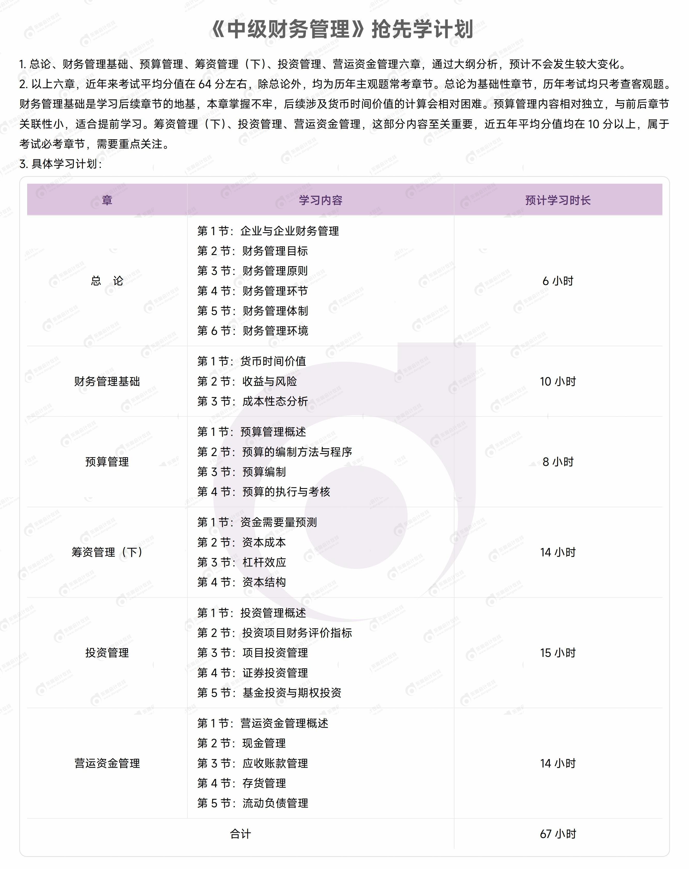 《中級財(cái)務(wù)管理》搶先學(xué)計(jì)劃