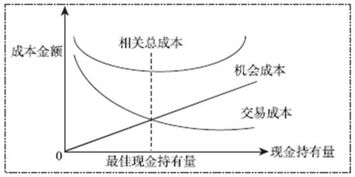 交易成本與機會成本相等,相關(guān)總成本最低,那么此時的現(xiàn)金持有量也就是最佳現(xiàn)金持有量