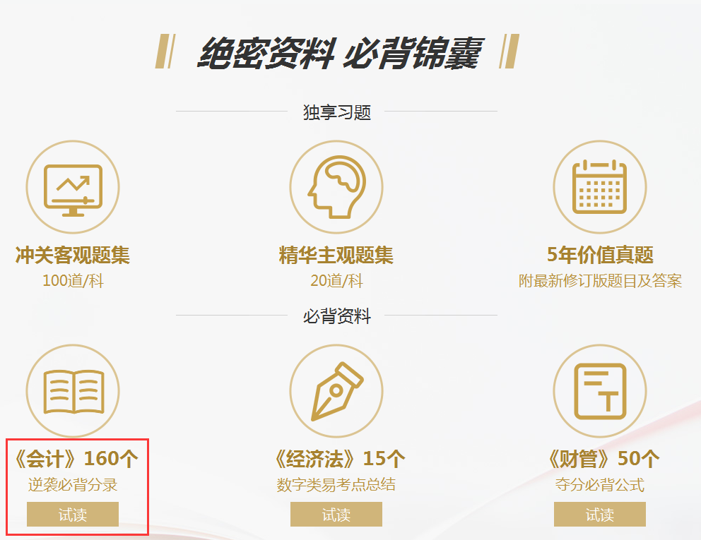 此外,《財務管理》50個奪分必背公式、《中級經(jīng)濟法》15個數(shù)字類易考點總結(jié),盡在東奧中級會計逆襲提分班!考生們可以進入“東奧中級逆襲提分班”,找到“絕密資料 必背錦囊”點擊“試讀”,了解更多中級會計干貨內(nèi)容!前往試讀>>