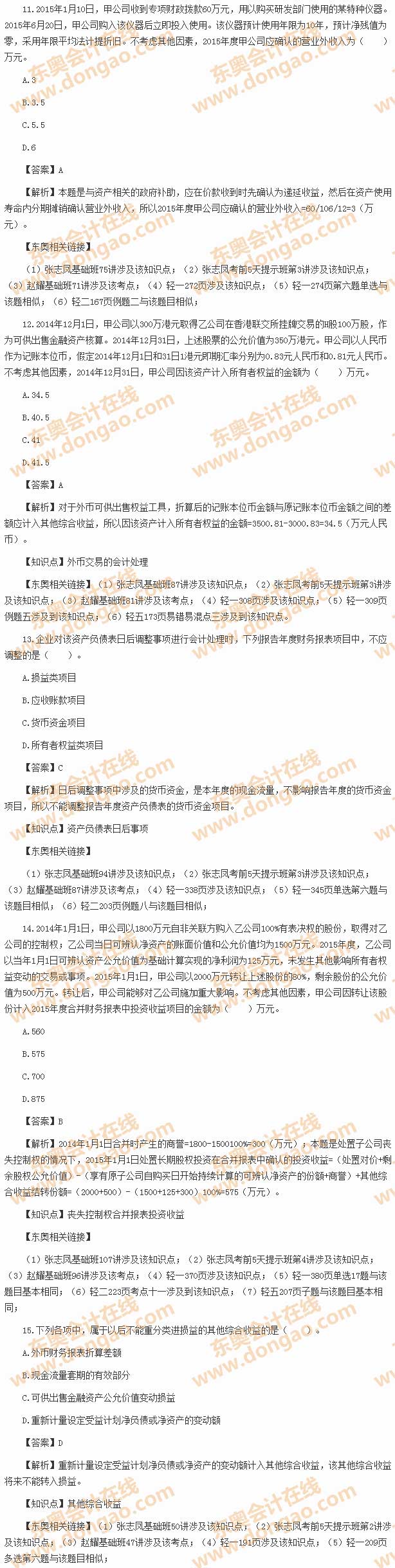 2015中級(jí)會(huì)計(jì)職稱《中級(jí)會(huì)計(jì)實(shí)務(wù)》考試真題及答案解析
