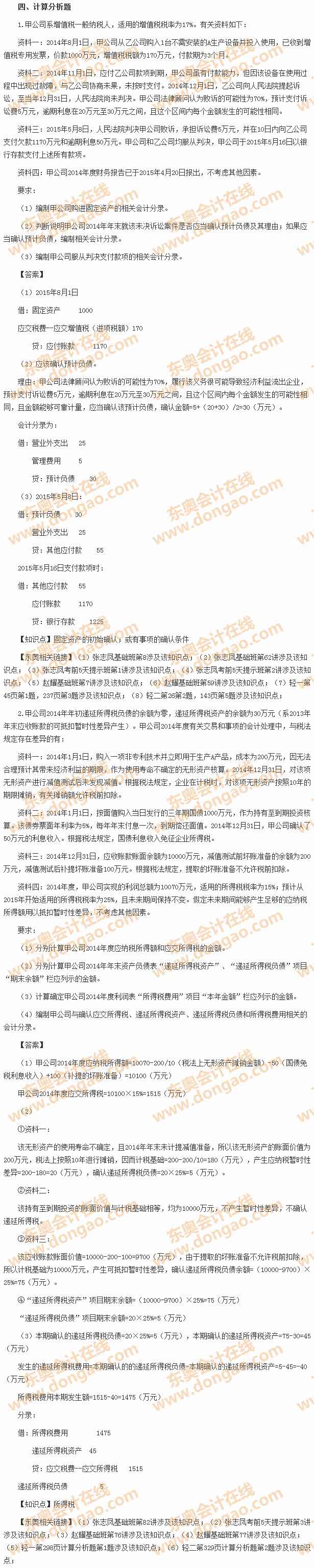 2015年中級會計職稱考試之《中級會計實務(wù)》考試真題及答案解析