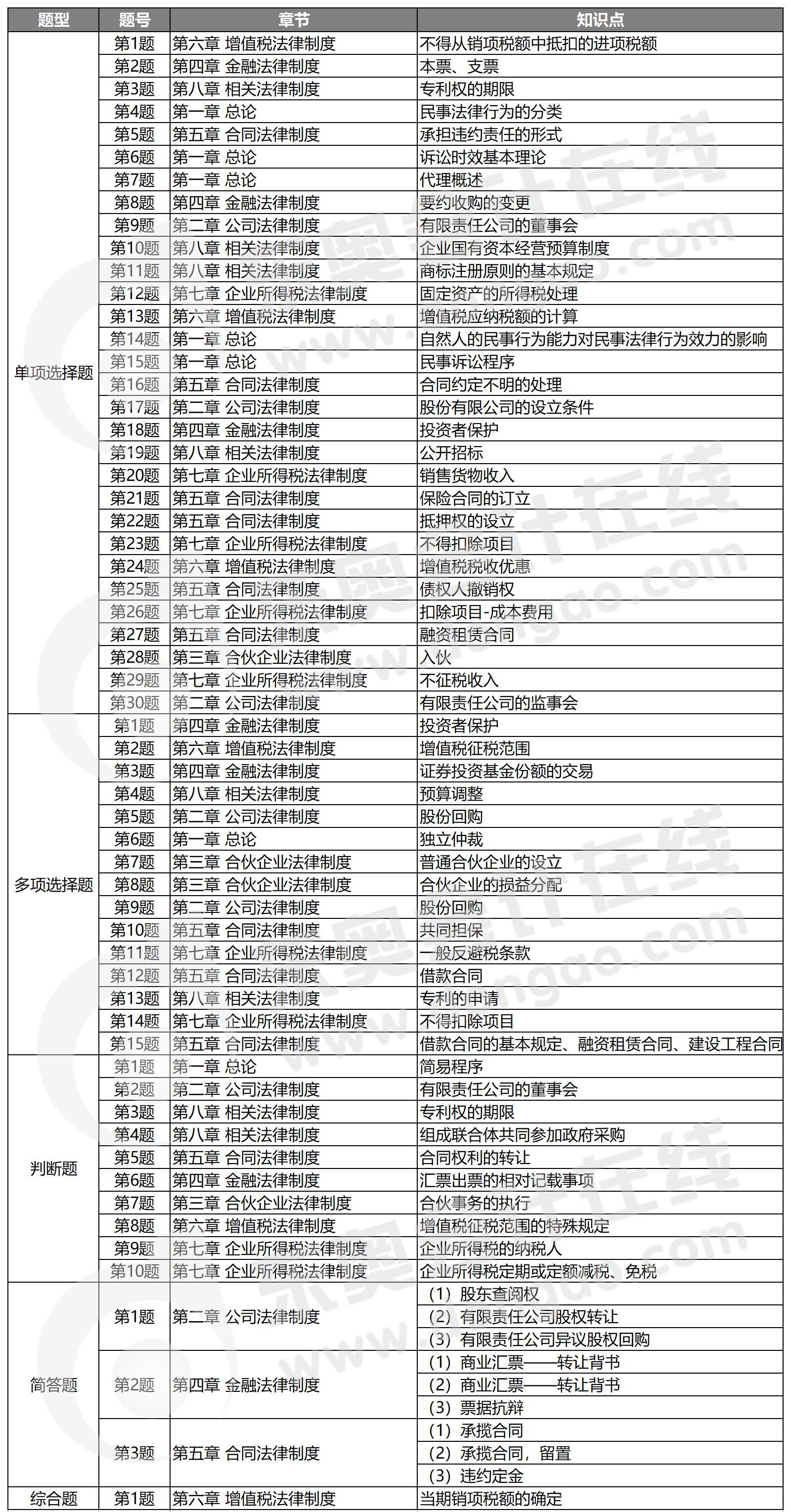 (2)考查知識(shí)點(diǎn)基礎(chǔ)、常規(guī)。各章涉及的知識(shí)點(diǎn)都是課件和圖書中常規(guī)知識(shí)點(diǎn)。需要說明的是,企業(yè)所得稅中一個(gè)多選題不太常規(guī),考查“一般反避稅條款”,但是并不影響通過考試,而且根據(jù)常識(shí)大概能夠判斷出來。