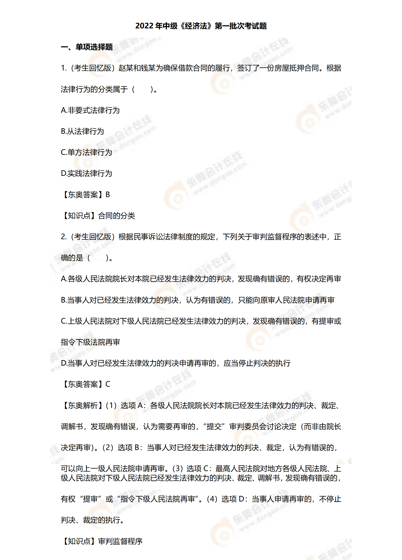 2022年完整版中級會計《經(jīng)濟法》第一批次考題及答案解析正在整理中,即將更新。相信很多考生朋友都想要在考后估分對答案,掃描圖片中二維碼,打開小程序,東奧和你一起估分!