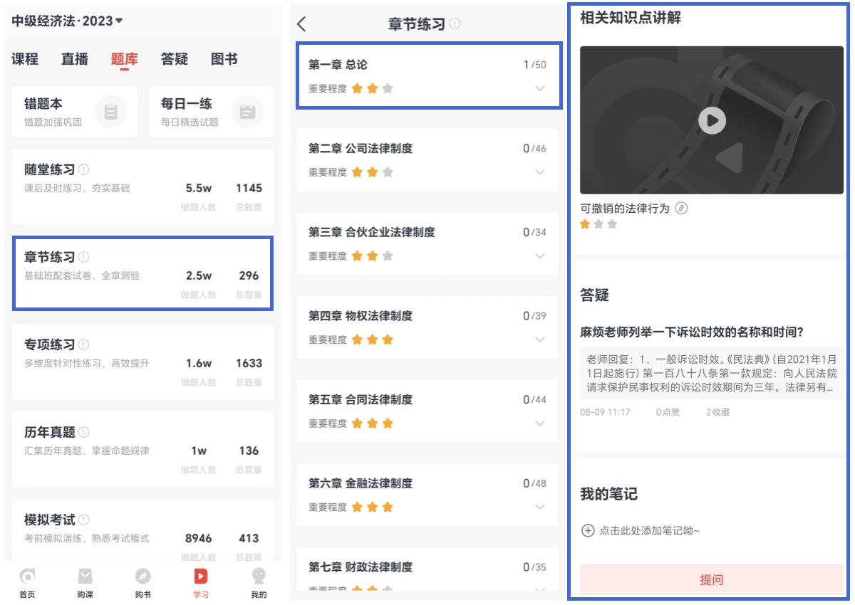 已購課學(xué)員——解鎖「完整版章節(jié)練習(xí)+名師講解+提問+筆記」等功能