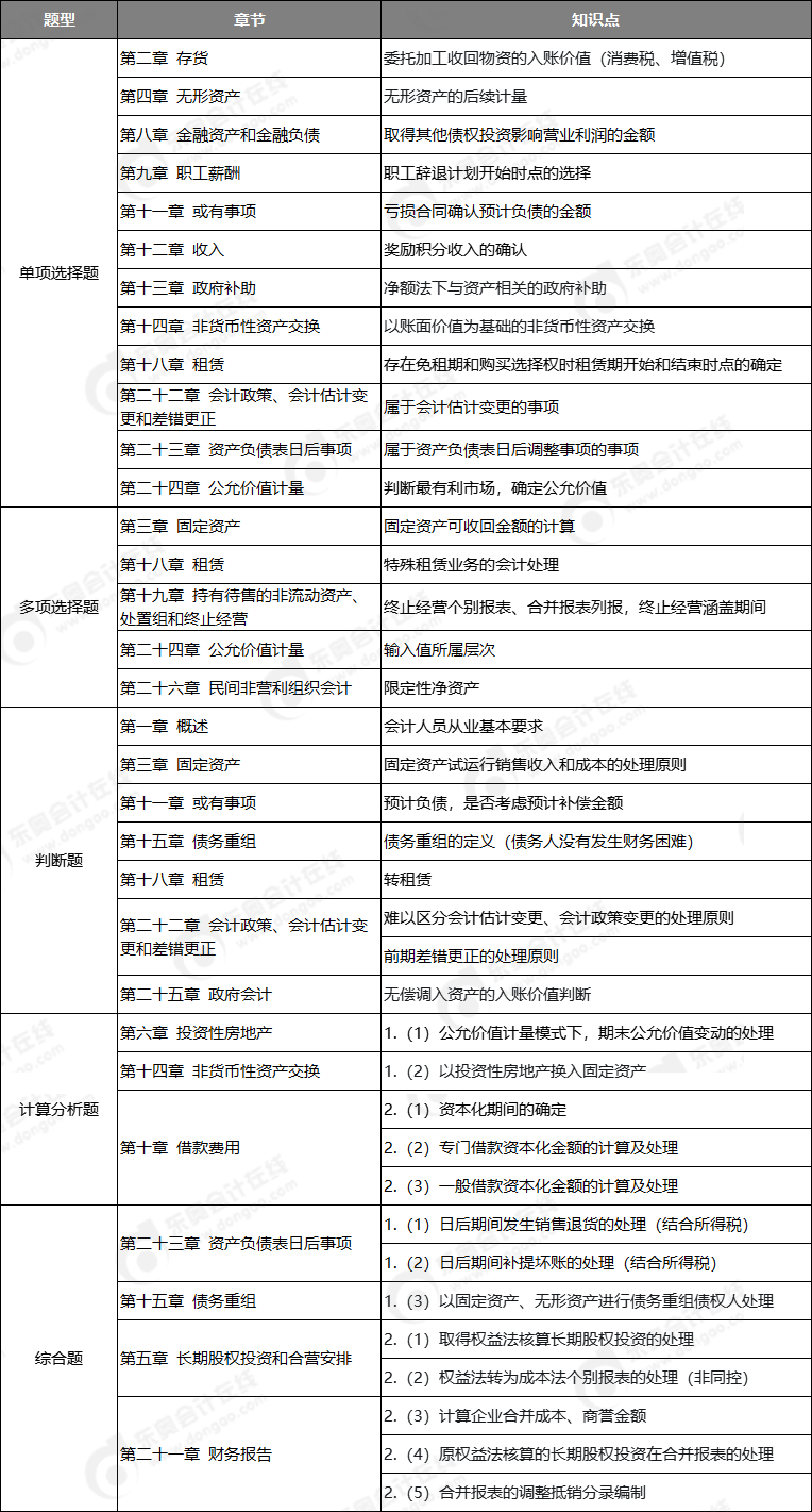 考題依然是秉持“重點(diǎn)恒重”和“逢新必考”原則,第六章 長期股權(quán)投資、第二十一章 財(cái)務(wù)報告、第二十三章 資產(chǎn)負(fù)債表日后事項(xiàng),屬于歷年考題的恒重點(diǎn)考點(diǎn),在本套試卷中以主觀題形式考查。
