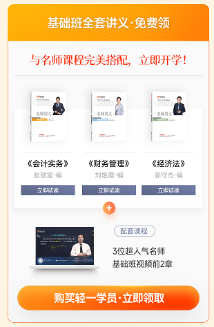 2022年中級會計報名已經(jīng)結束,你開始備考了嗎?是否還在為快遞停運,沒有輔導資料而煩惱?東奧了解大家的難處,不希望有任何一個學員掉隊,因此推出了免費領取資料活動,希望能夠幫助學員們盡快開始備考。針對已購和即將購買《輕一》的學員,可免費領取對應科目《輕一》電子版+基礎班講義。此外,全網(wǎng)學員均可免費領取《輕一》豪華體驗版!快來一起了解一下如何領取吧!