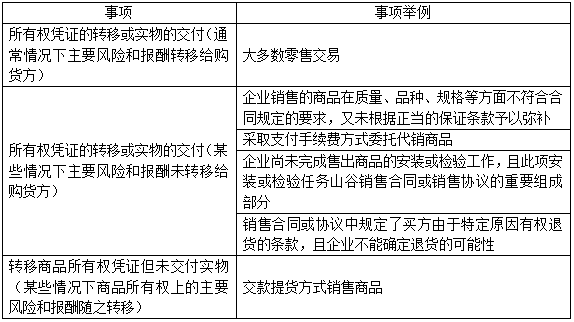 企業(yè)已將商品所有權(quán)上的主要風險和報酬轉(zhuǎn)移給購貨方