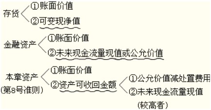 注意:不同類型的資產(chǎn)進(jìn)行減值測試時,一般都是某兩項指標(biāo)的比較: